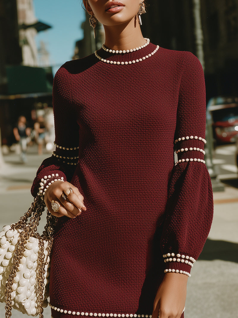 Caramel Brown One-Shoulder Lantern Sleeve Knit Dress