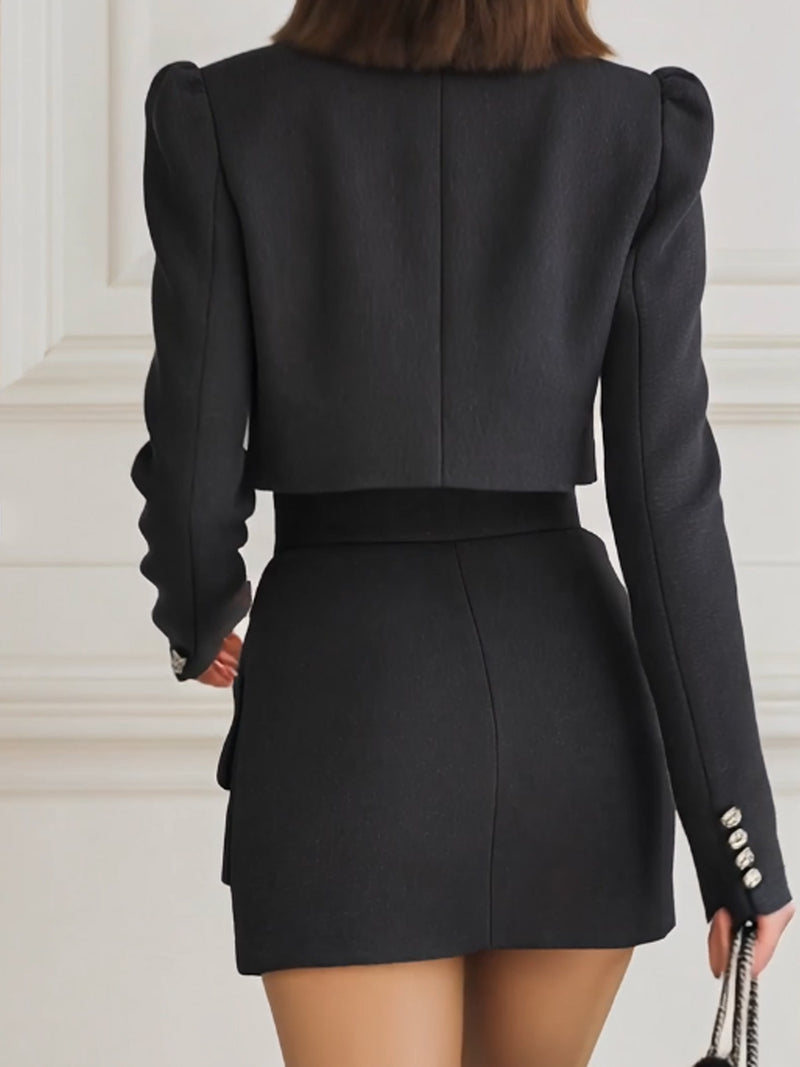 White Cropped Blazer Set With Pleated Maxi Skirt