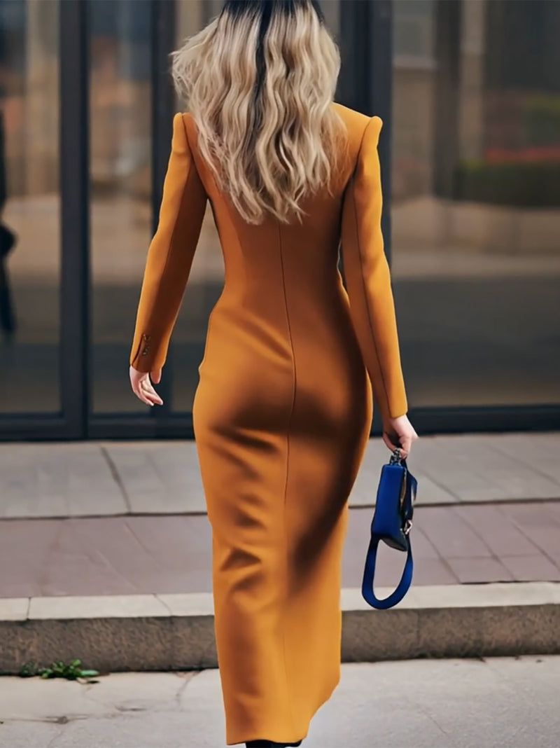 Orange Brown Blazer Dress With Blue Crisscross Buckles