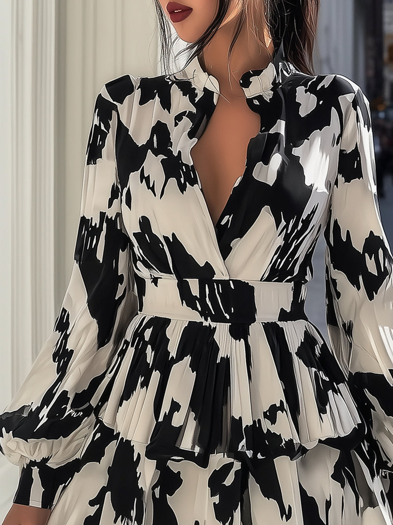 Stylish Black Midi Dress With Voluminous White Sleeves