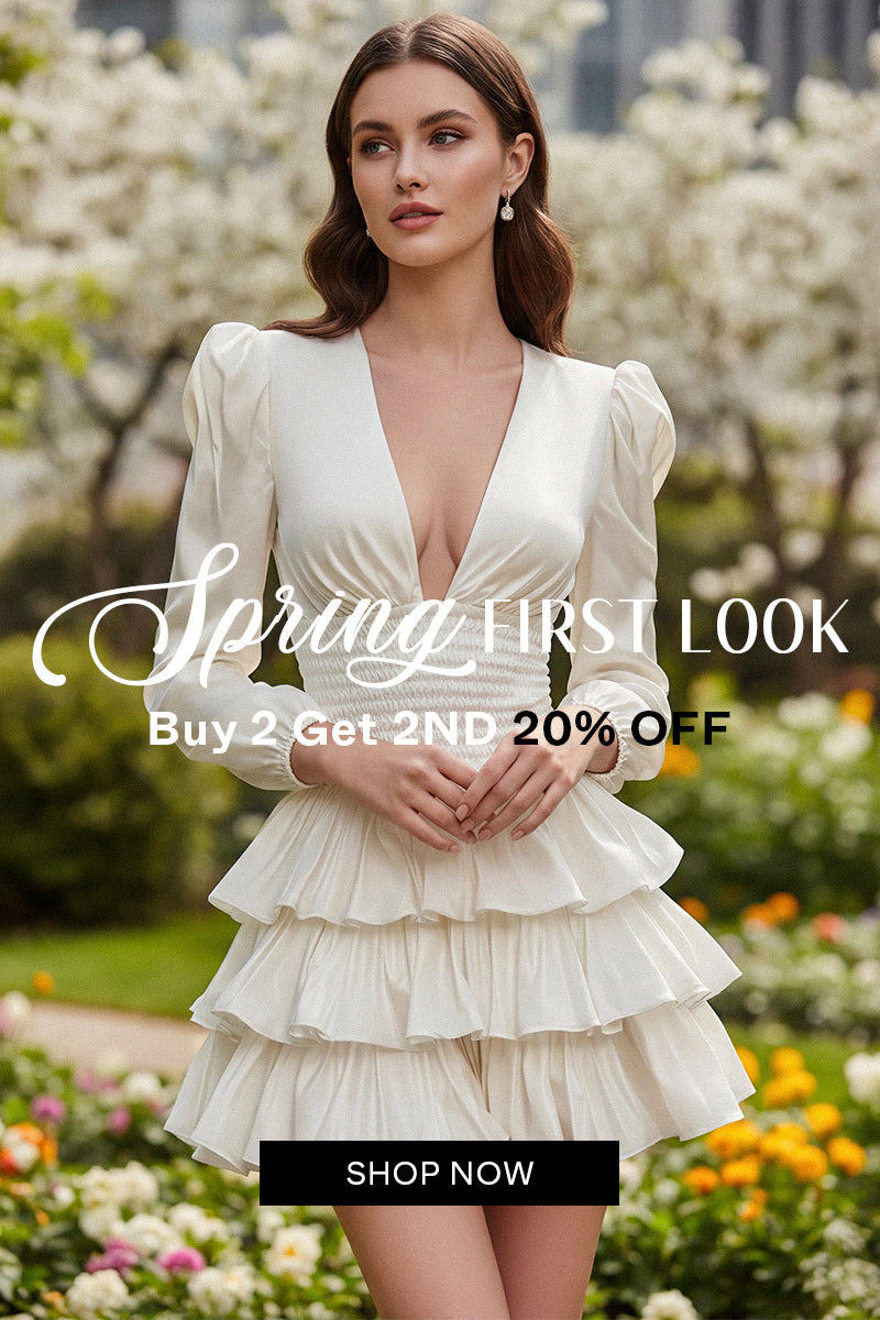 Ivory Puff Sleeve Mini Dress With Gold Button Front