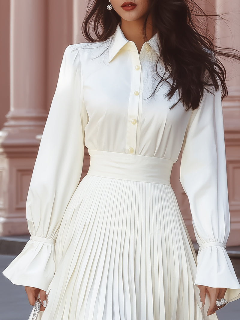 Romantic Ruffle Hem Button Front Bell Sleeve Mini Dress