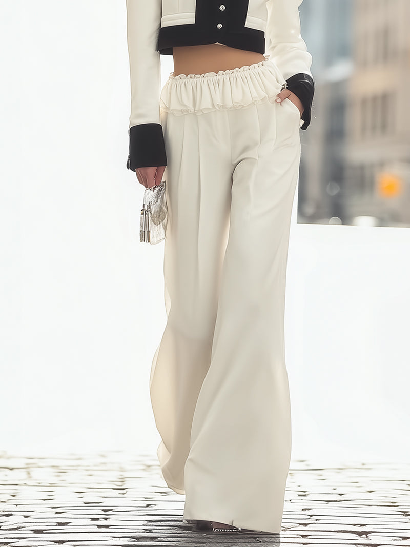 Short Suit Jacket With Ruffled Waist And Wide-leg Pants Set