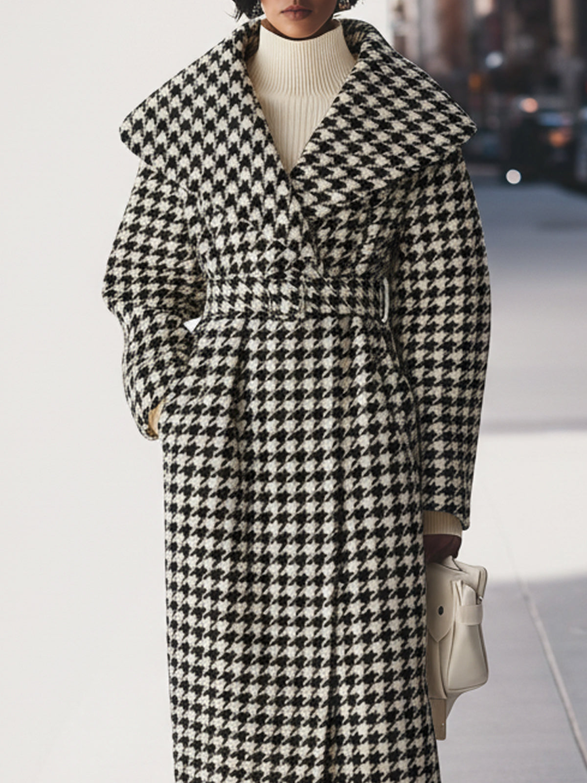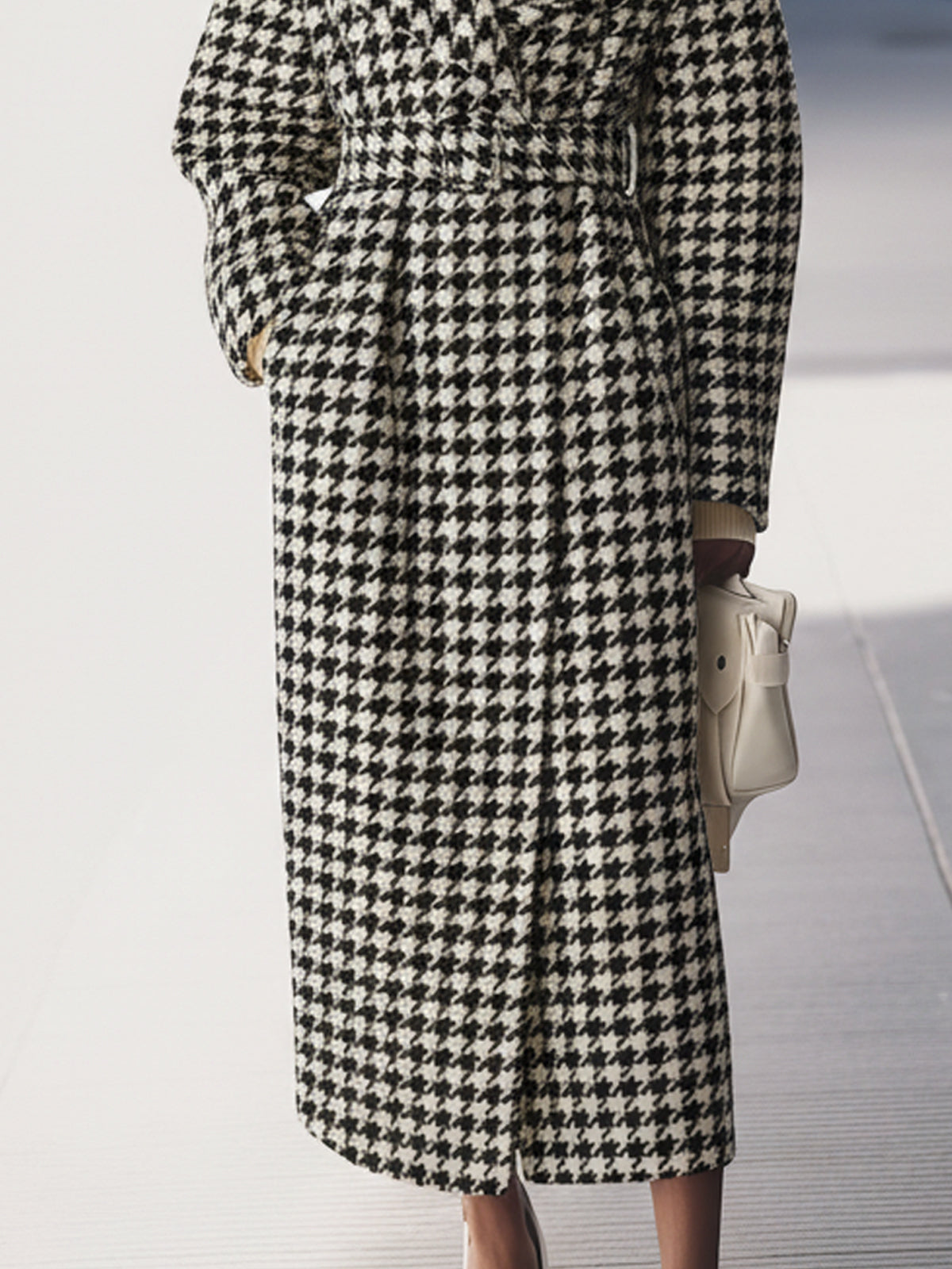 Houndstooth Long Wool Coat