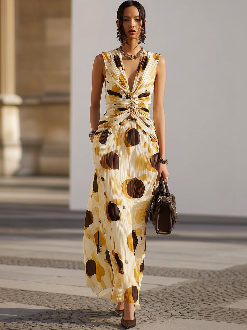 Classic Fitted Top And High-waisted Pleated A-line Skirt Set