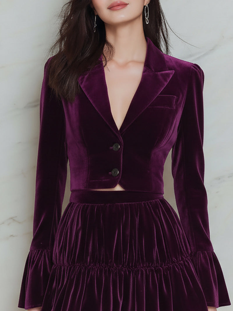 Short Blazer And Double-layered Pleated Skirt Set