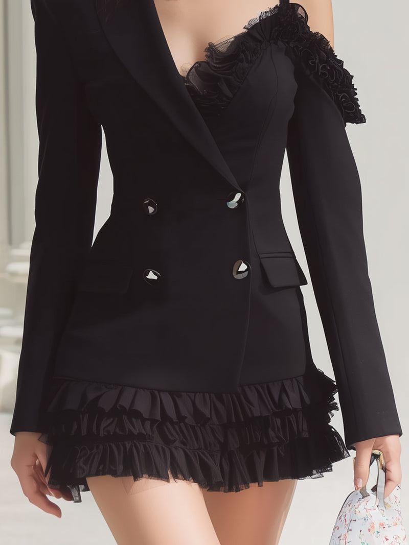 Ruffled Shoulder And Fitted Waist Suit
