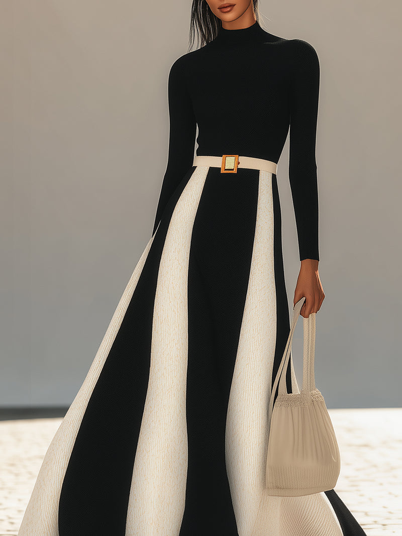 Contrast Knit Polo Midi Dress In Burgundy And Dark Green