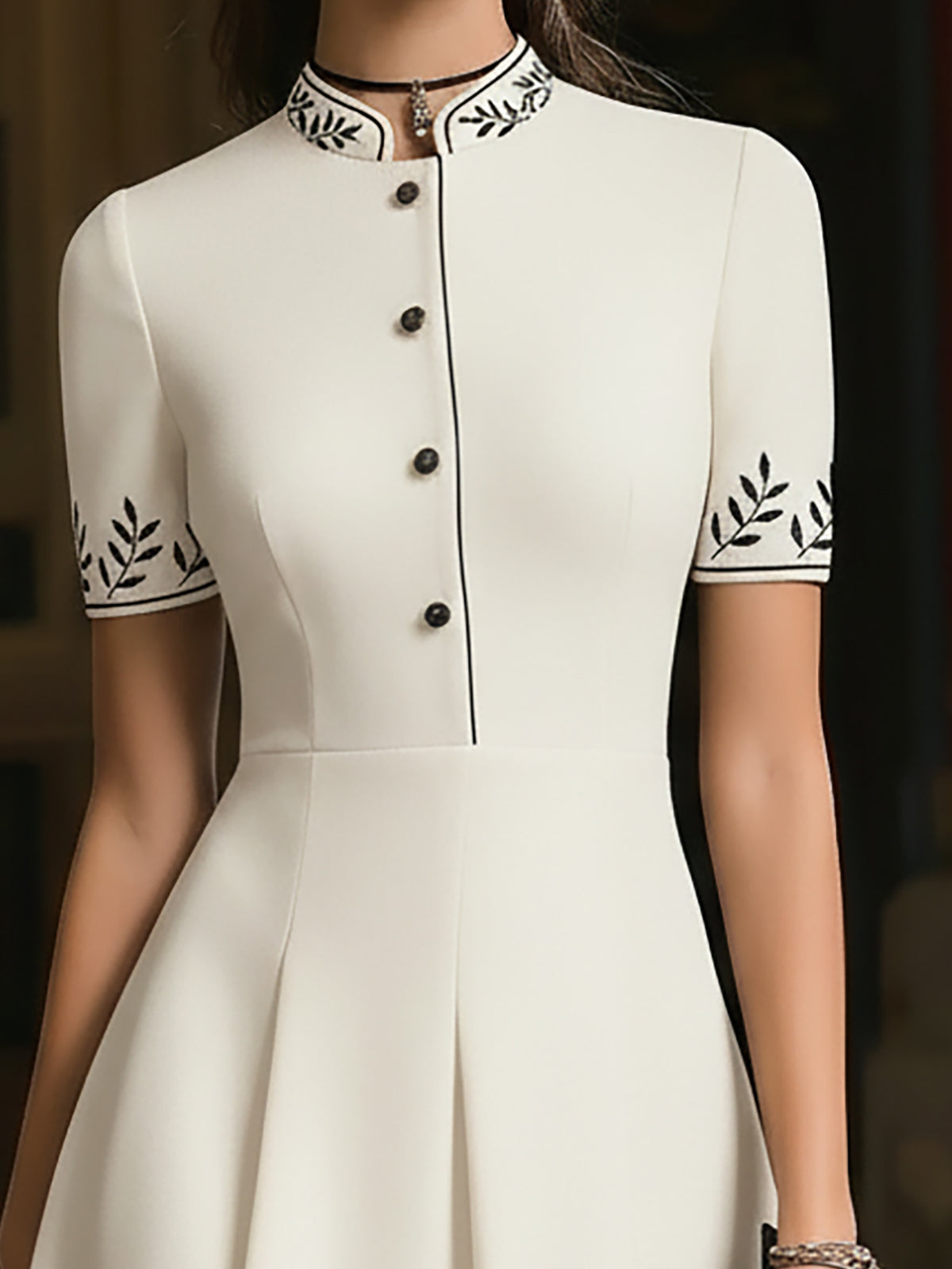 Elevate your everyday elegance with the Elegant Cream Dress With Embroidery Trim—a refined piece designed for timeless style and modern femininity.