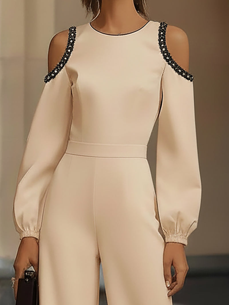 Elegant Light Beige Cold Shoulder Jumpsuit