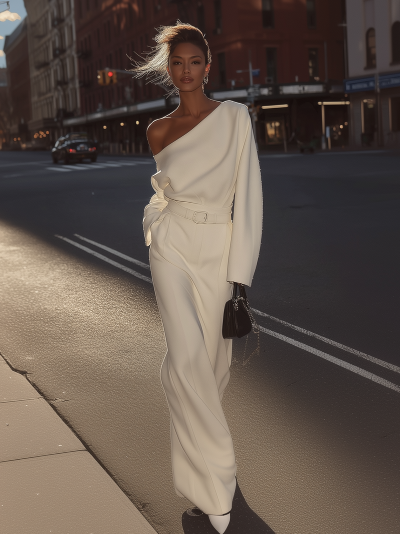 White One Shoulder Top With Matching Skirt Set