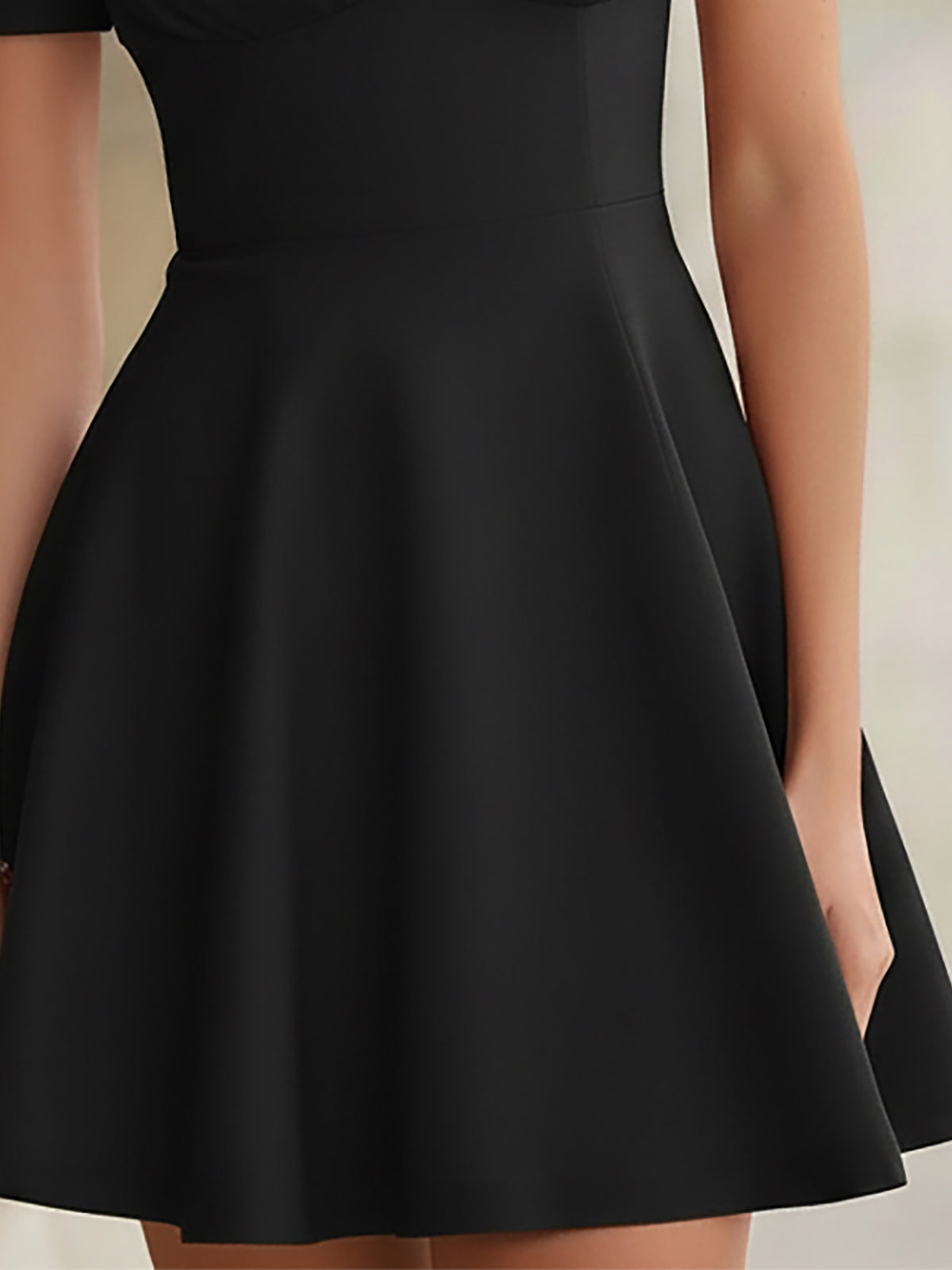 Make a statement with the Chic Black Sheer Sleeve Bow Neck Mini Dress—a playful yet elegant design crafted for the confident and stylish woman.