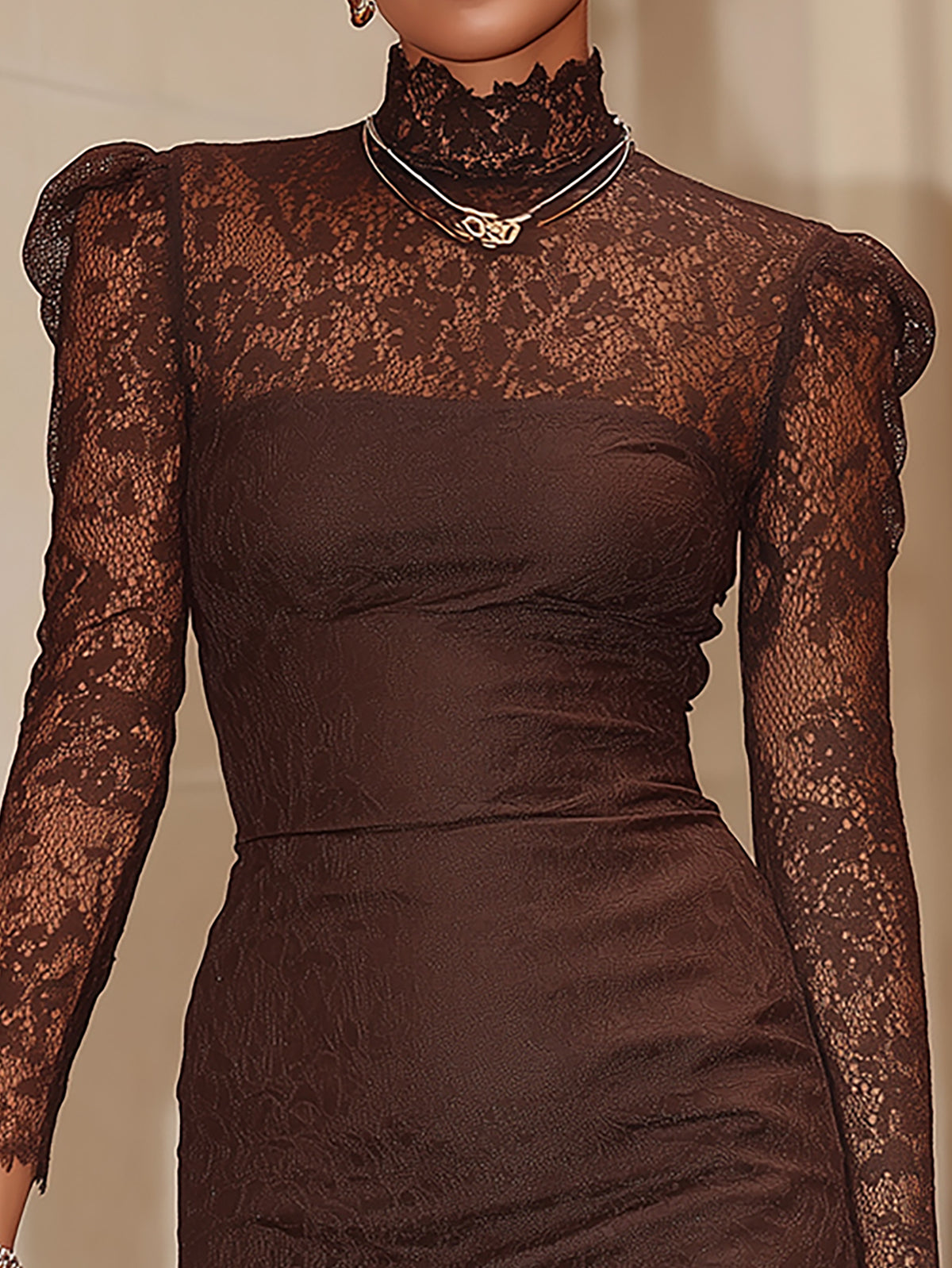 Elegant Chocolate Brown Lace Dress