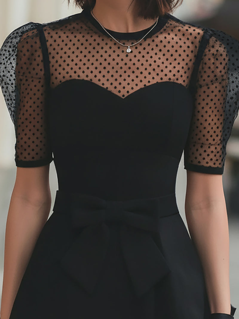 Black Dress With Polka Dot Mesh Sleeves