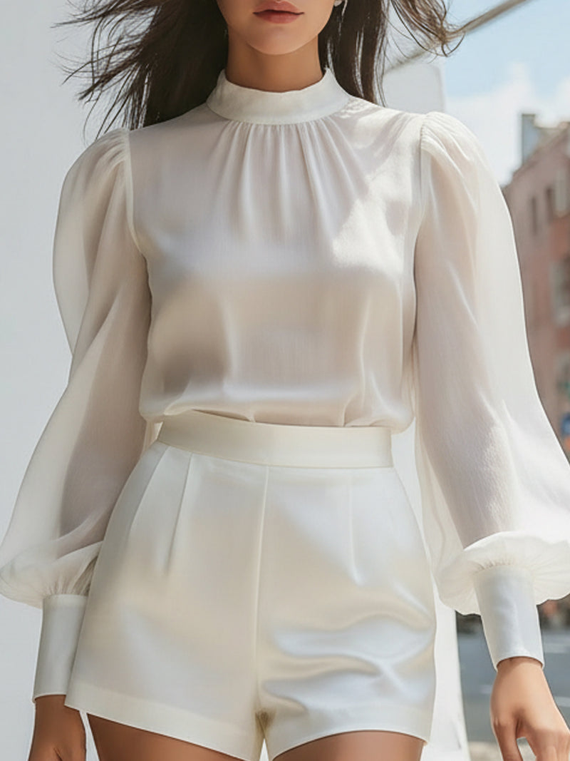 Off-white Lantern-sleeved Chiffon And Satin Set