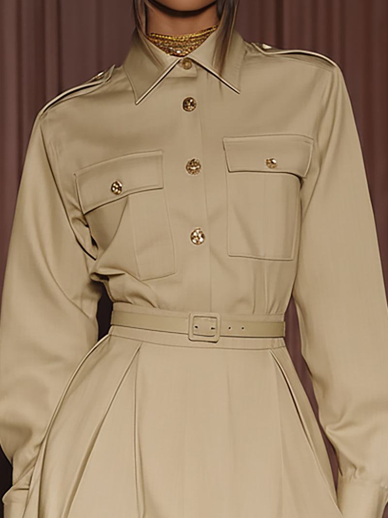 Light Khaki Utility Shirt Dress Belted A Line Silhouette