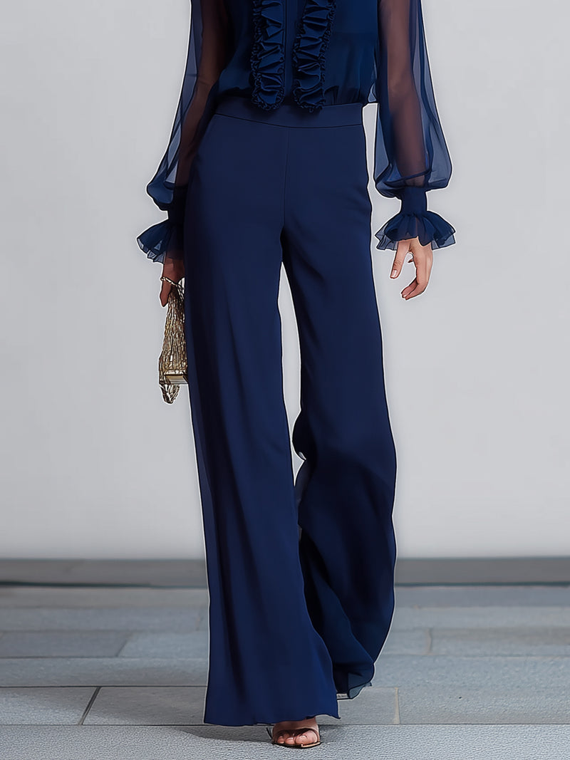 Chiffon Mesh Ruffled Shirt And Pants Set