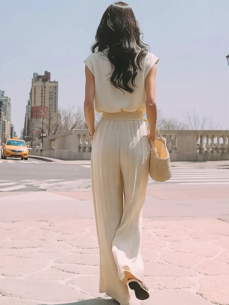 Sleeveless Minimalist Wide-leg Linen Suit
