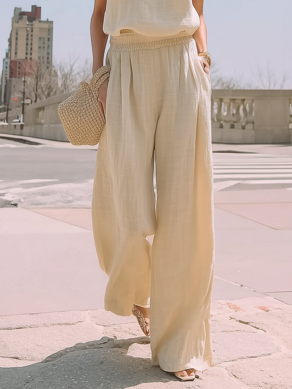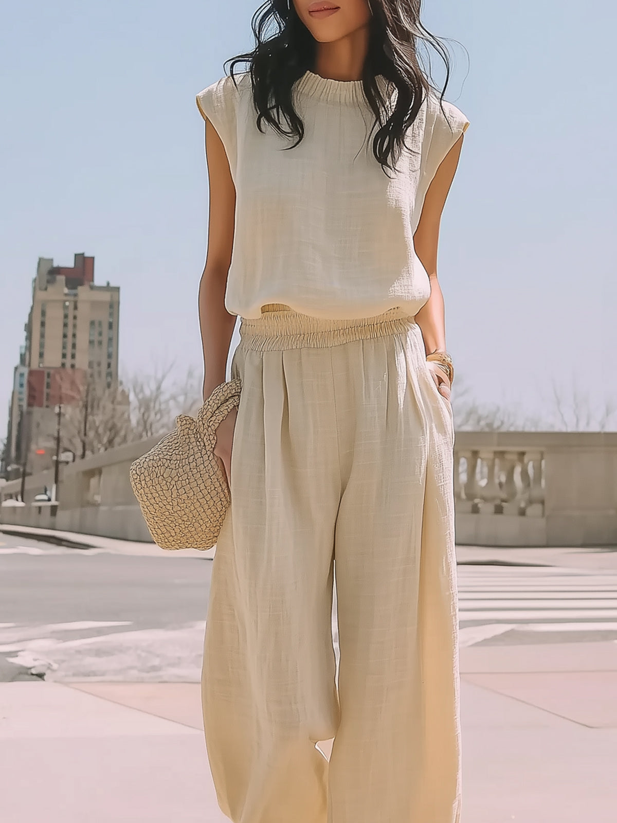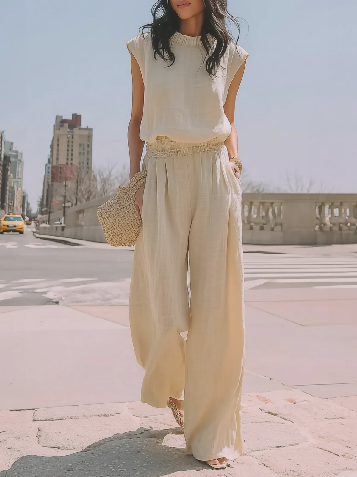 Sleeveless Minimalist Wide-leg Linen Suit