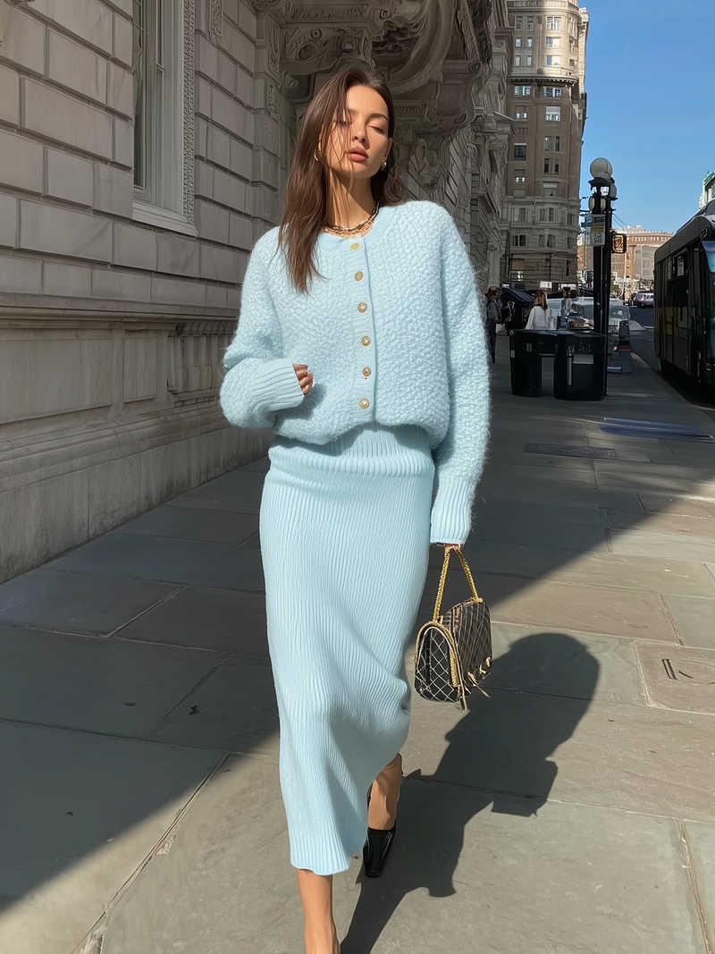 Chic Light Blue Knitted Two-Piece Set