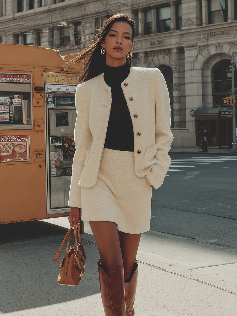Cozy Fleece Cropped Blazer With Matching Mini Skirt