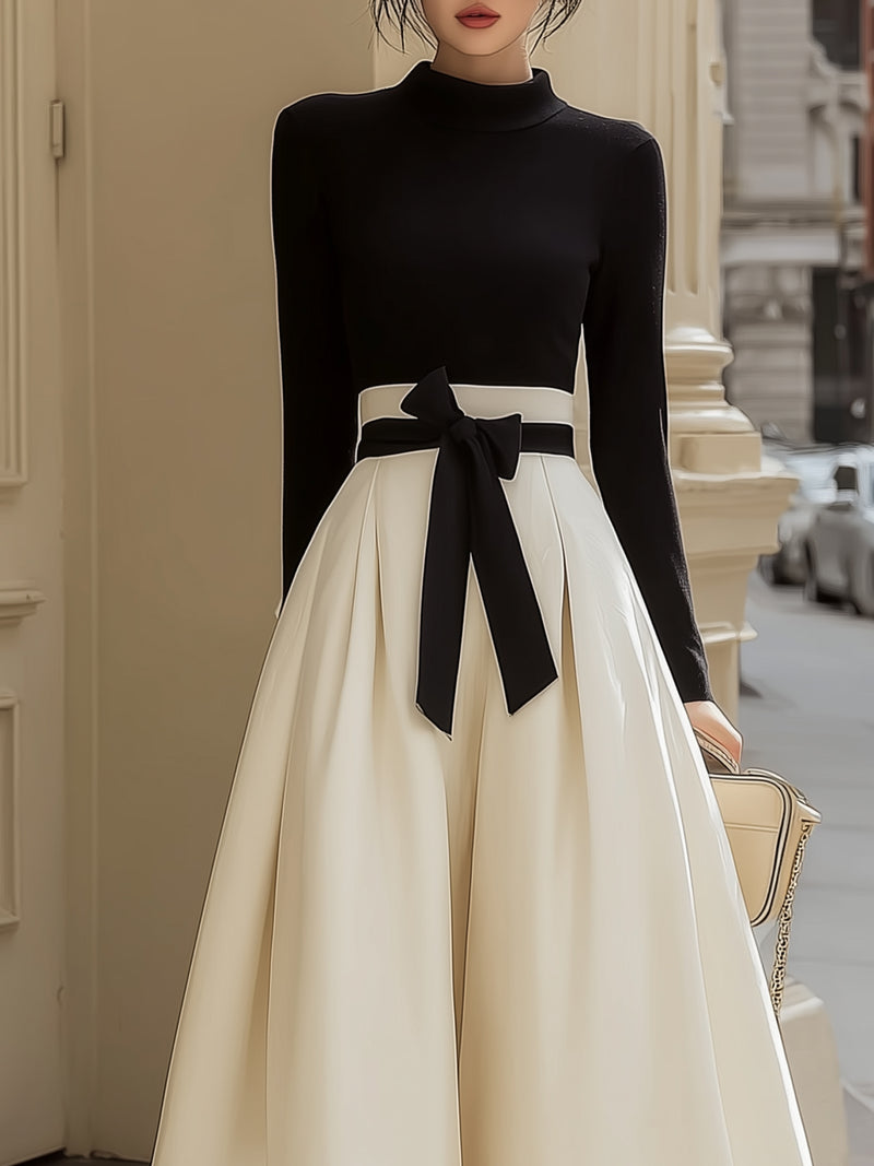 Black Diamond Bow-knot Knitted Sweater And Satin Skirt Set