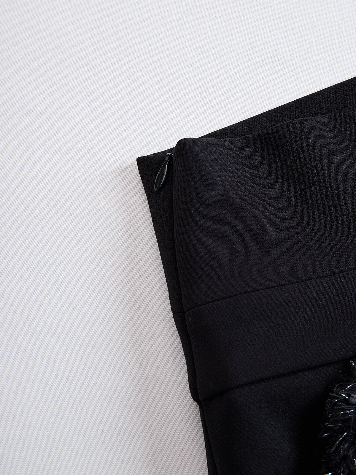- Material: High-quality black 100% Polyester fabric combined with delicate fringe accents for texture and visual interest