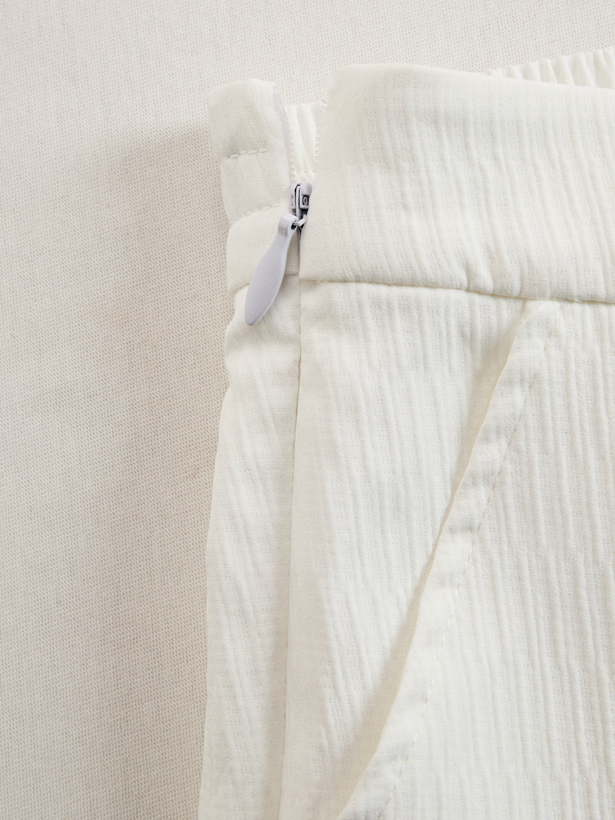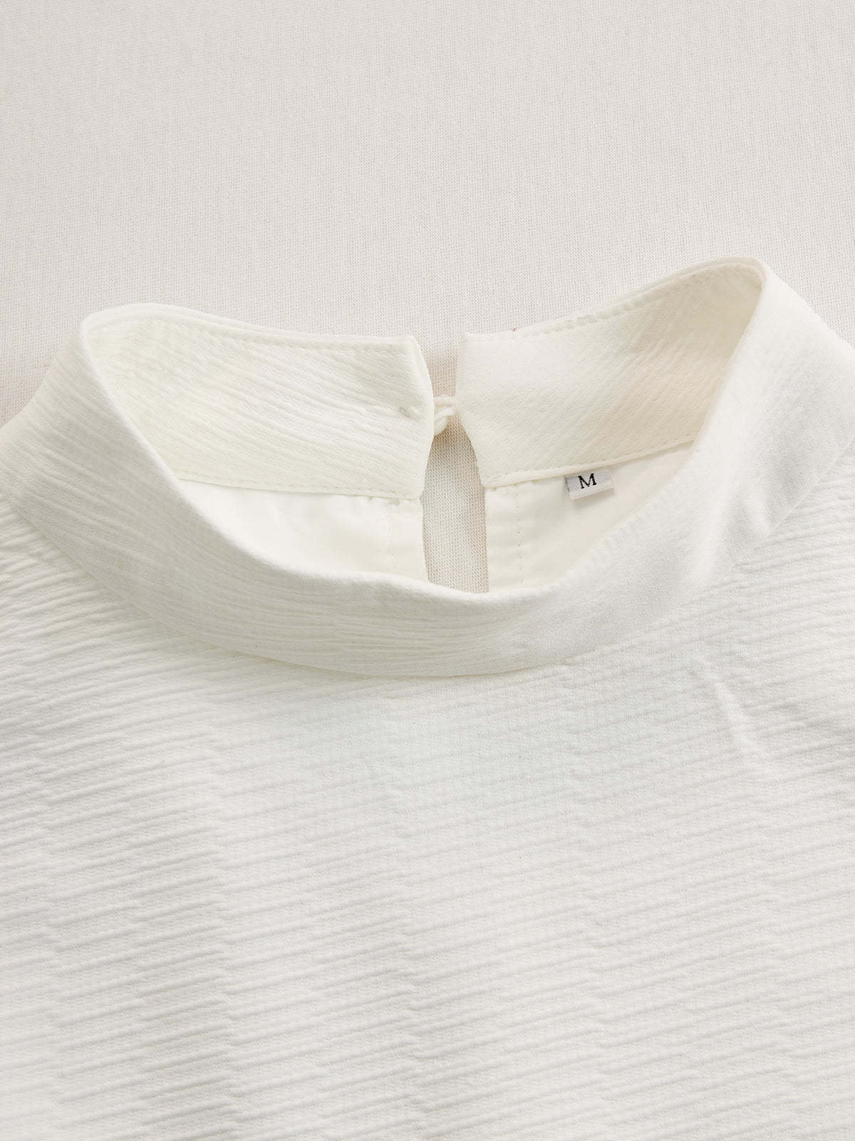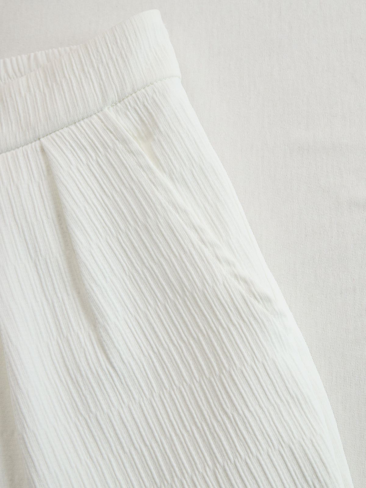 The high collar, cropped length, and wide-leg design combine artistic elegance with comfort. The textured fabric enhances the sense of luxury, making it an effortless "ambiance beauty."