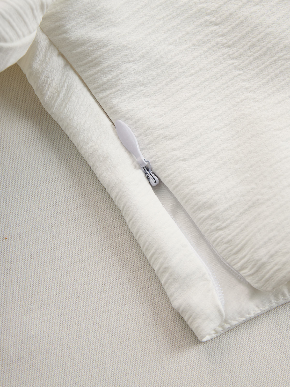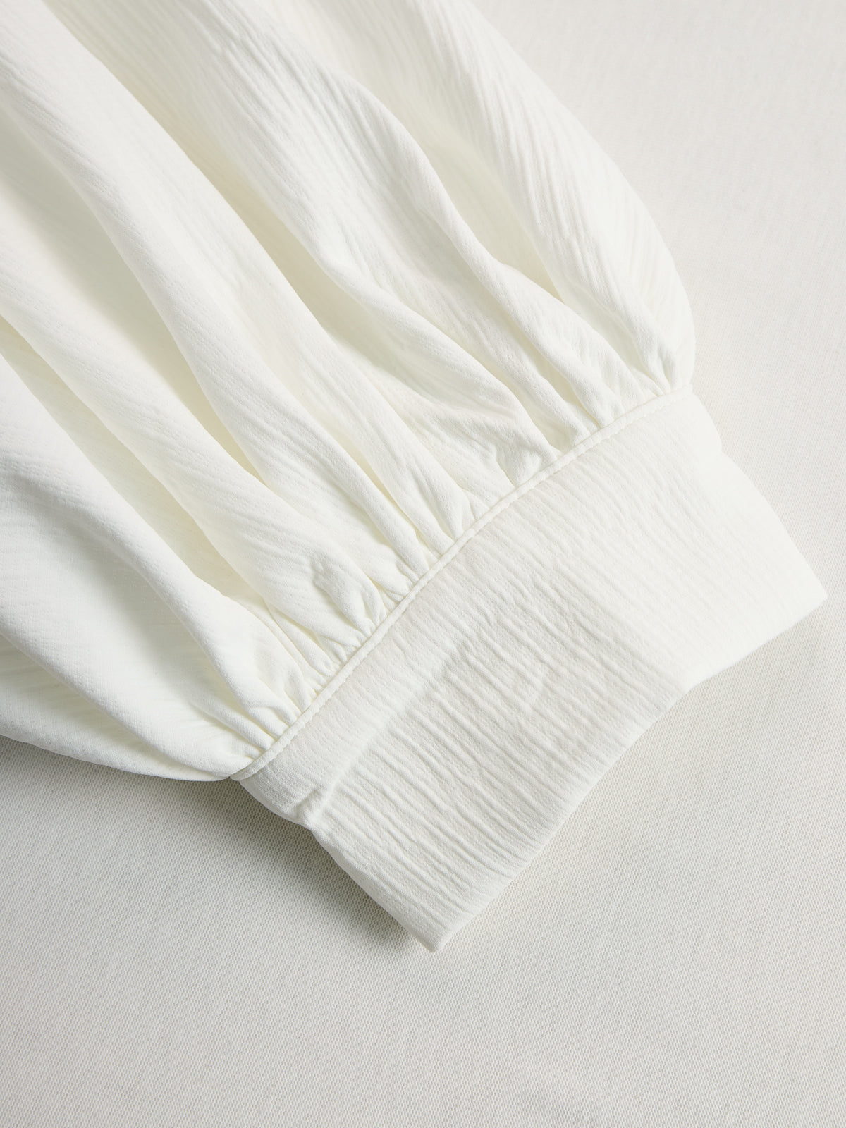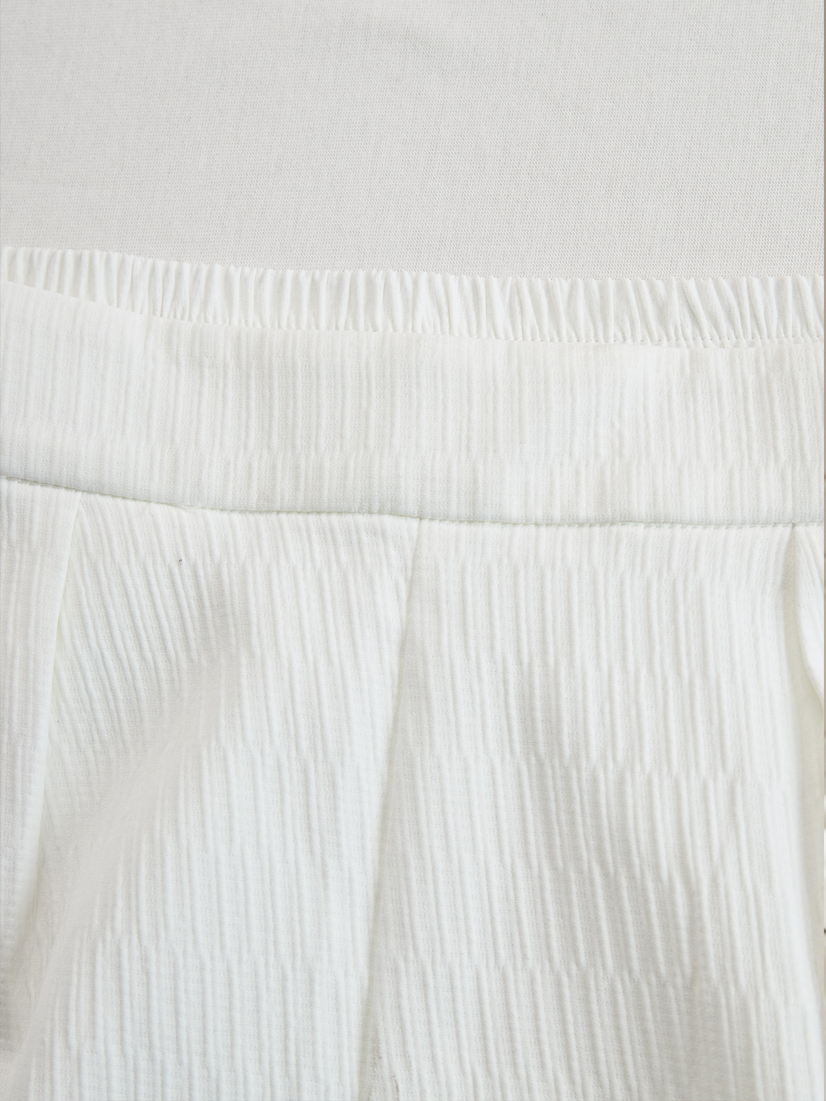 The high collar, cropped length, and wide-leg design combine artistic elegance with comfort. The textured fabric enhances the sense of luxury, making it an effortless "ambiance beauty."