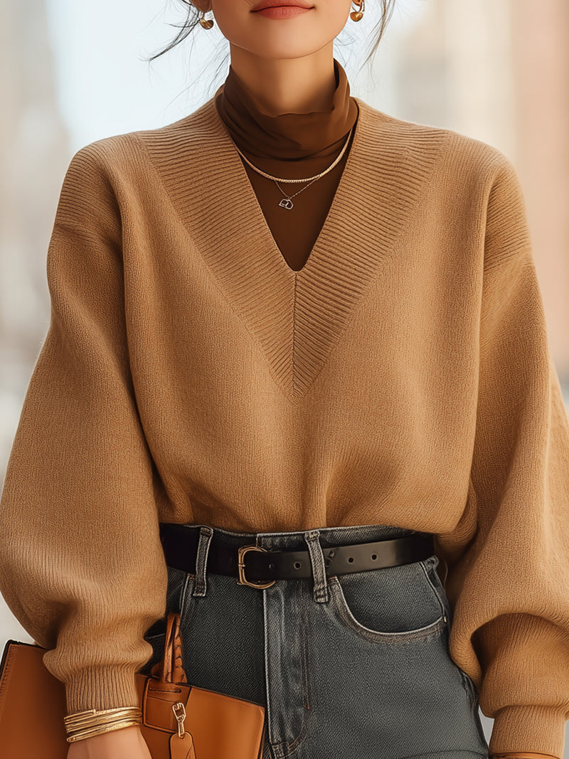 V-Neck Balloon Sleeve Sweater